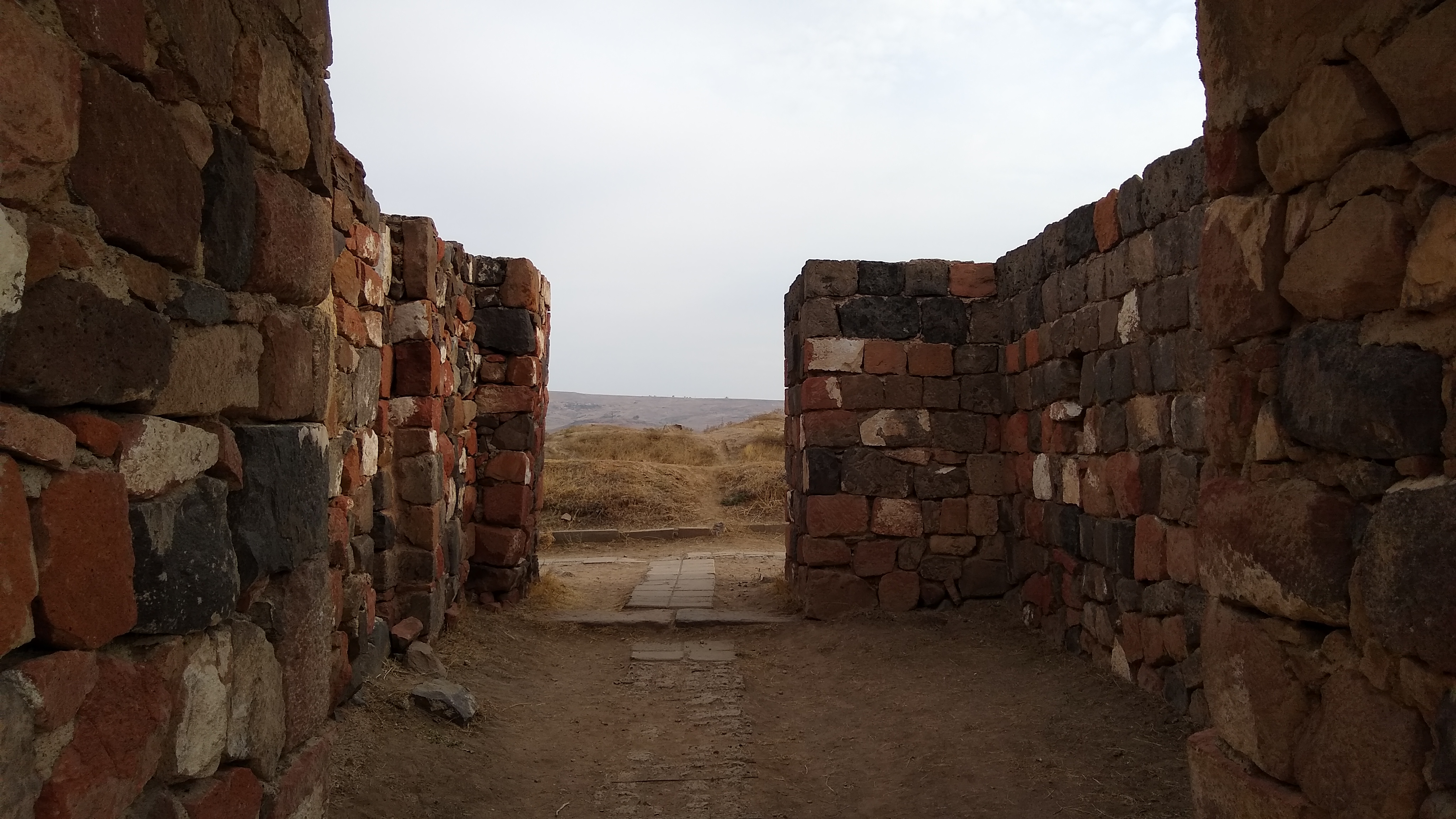Figure 8: Walls in the ruins of the Erebuni Fortress. The structure is very well preserved for its age, and you can see many of the design features of fortress, including curtain walls which are a defensive feature that mean attacking armies would be trapped between walls and surrounded by attackers, which were later used in Medieval Welsh castles, as the English had seen these fortress designs in the Middle East during the Crusades.