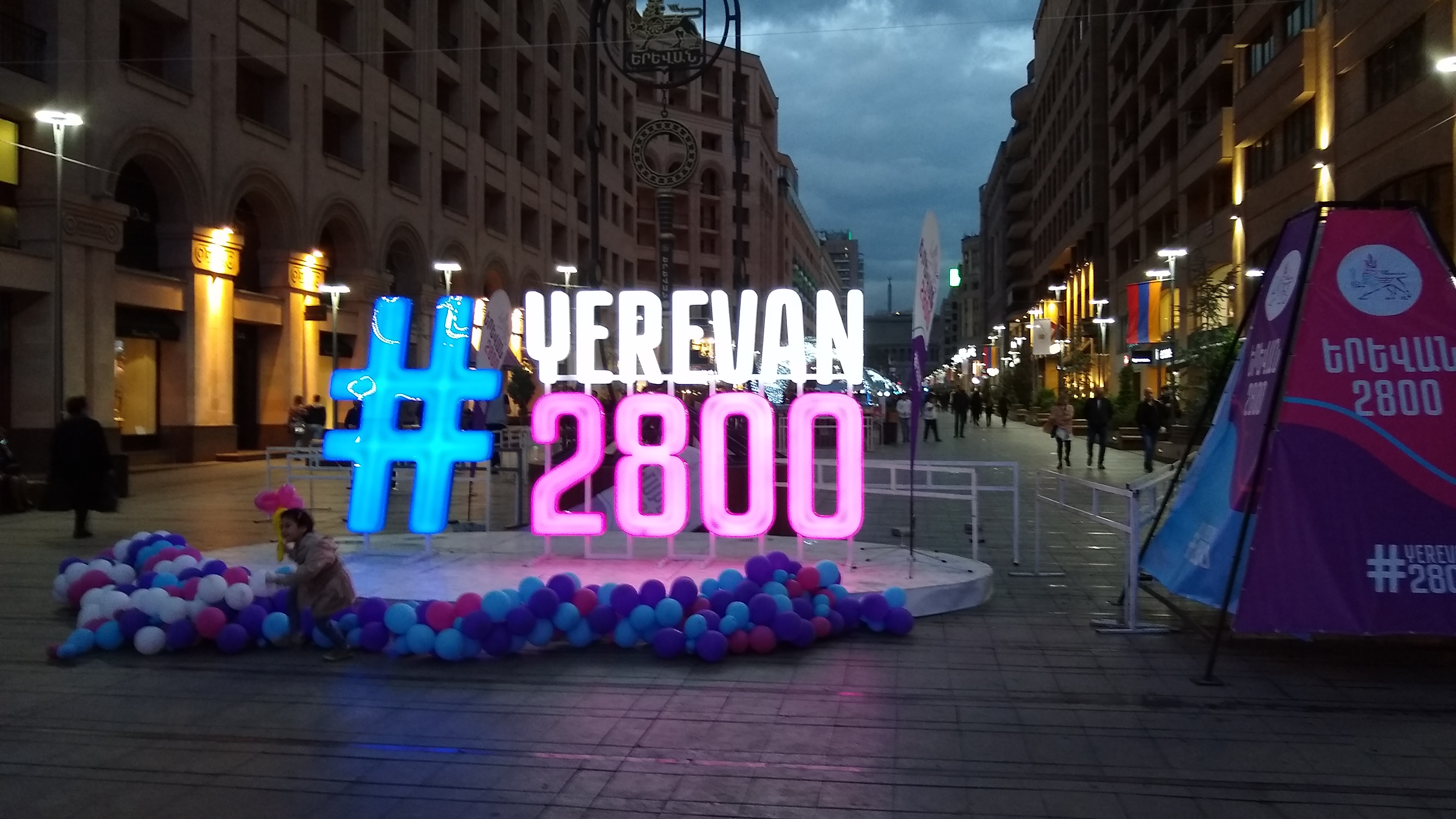 Figure 1: The 2800th anniversary of Yerevan saw Yerevan decorated with lots of signage to celebrate the history of this ancient city. AVC also invited volunteers to spend the weekend exploring the city in order to celebrate in lieu of an excursion outside the city that weekend.