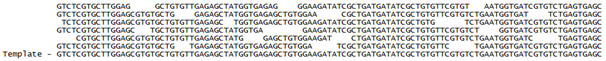 Figure 4: Alignment of sequence contigs from NGS used to produce a sequence. If the sequence is unknown, as in a new sequencing project, then these can be analysed and aligned together to produce a sequence. Or in the case of molecular diagnosis, the contigs can be aligned to a template sequence and differences to the template can be identified.