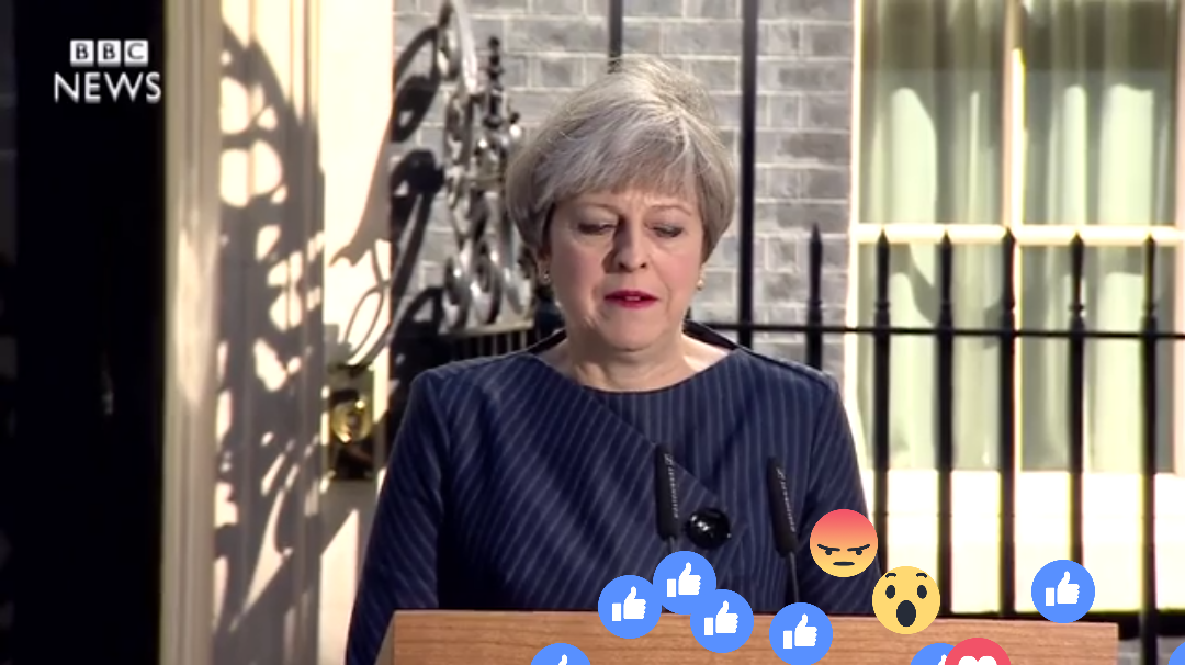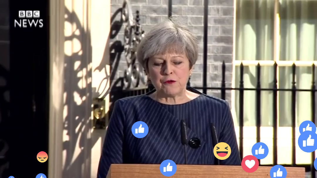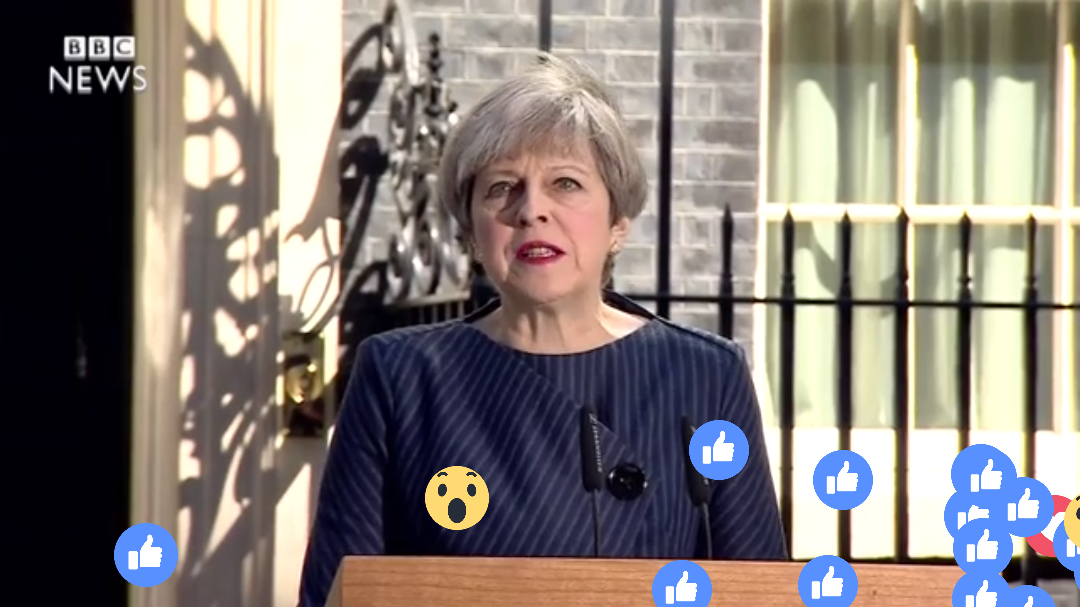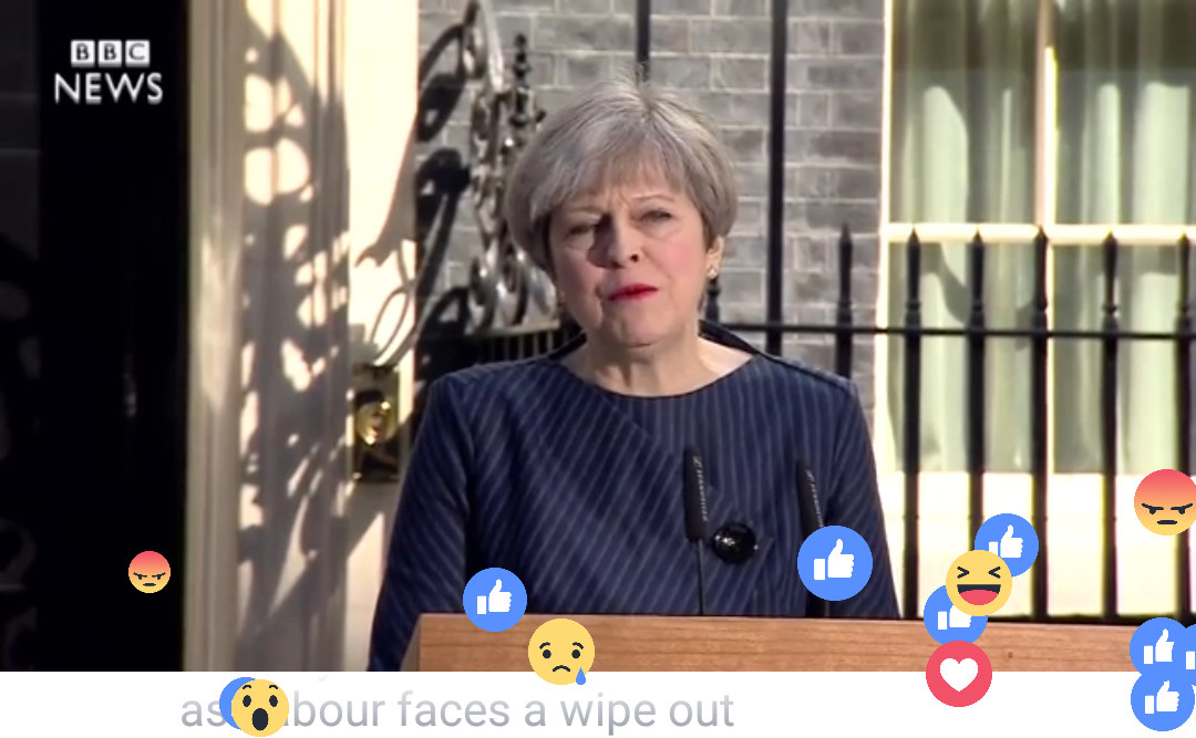 Anyway, because most people like this in this video it's difficult to manipulate. So let's find another video like, oh, I don't know, Teresa May announcing the 2017 General Election (or leaving the EU, or something like that). We watch this one for a bit, see an angry: