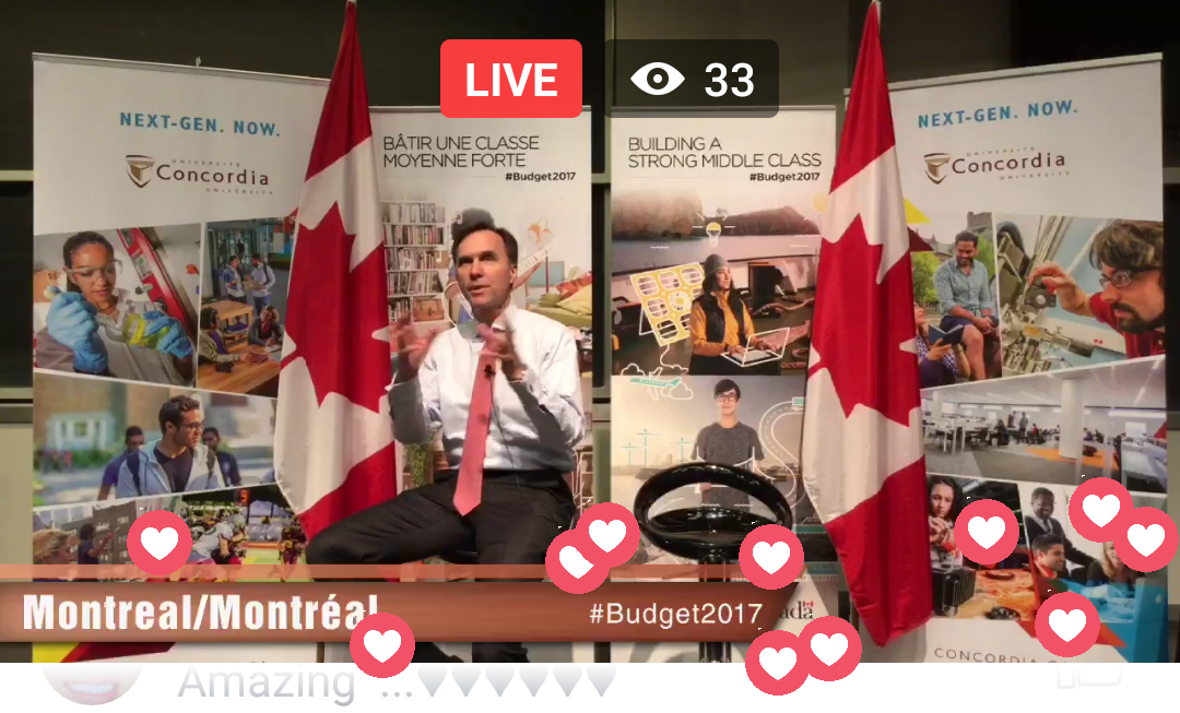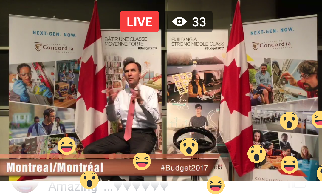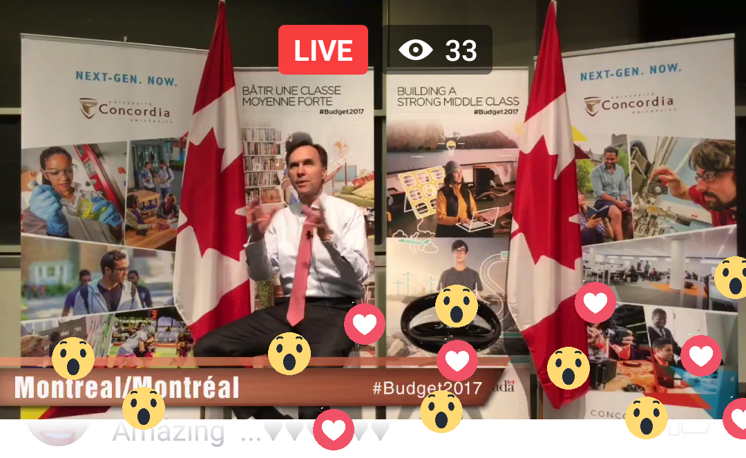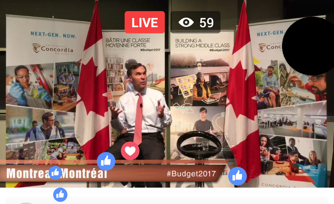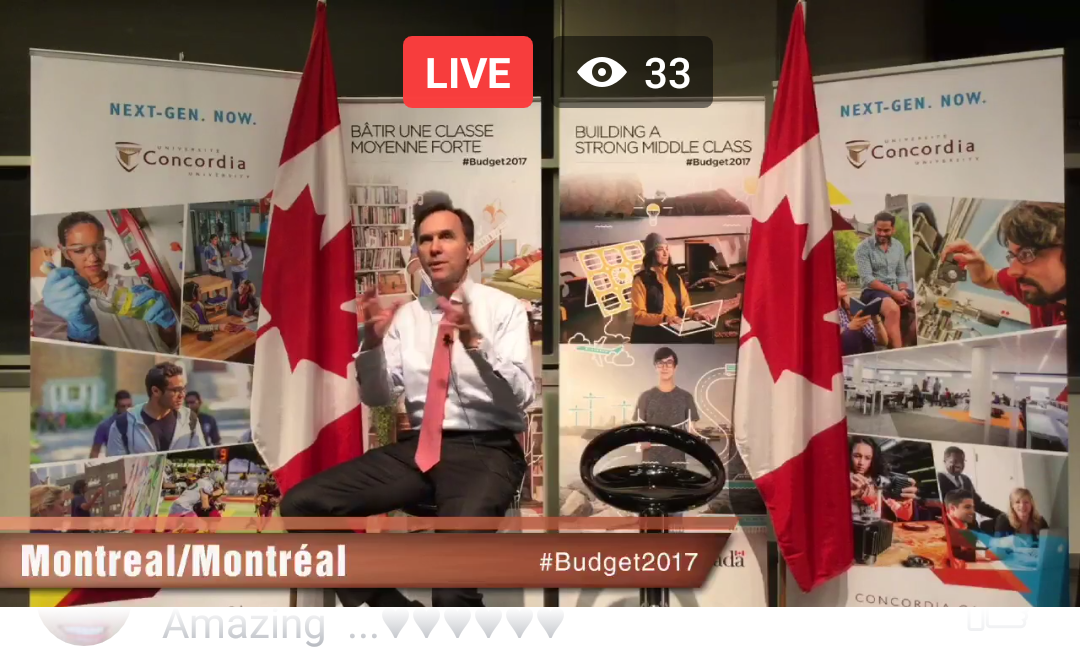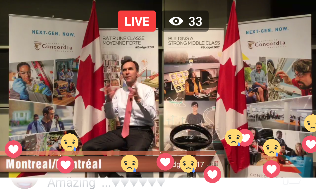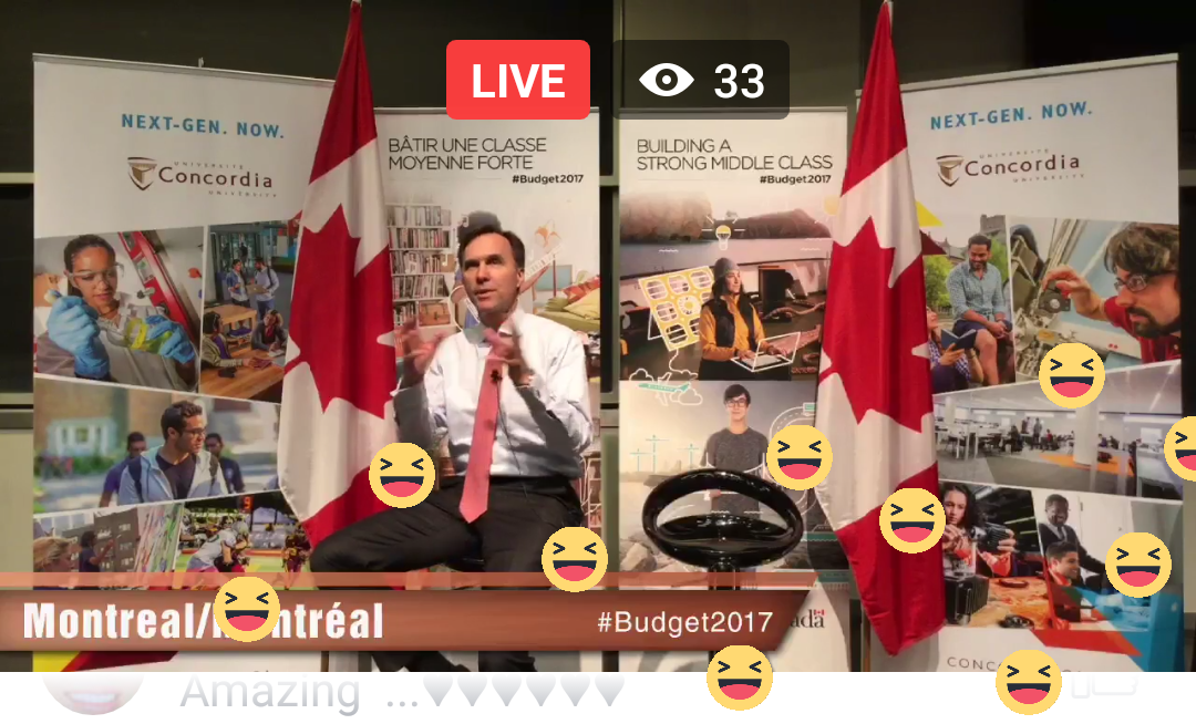 So there you go. Lots of people think Bill Morneau is an excellent comedian, as opposed to being Canada's finance minister, doing a live feed on Facebook from a Q&A session at Concordia University that he promoted to his fans.